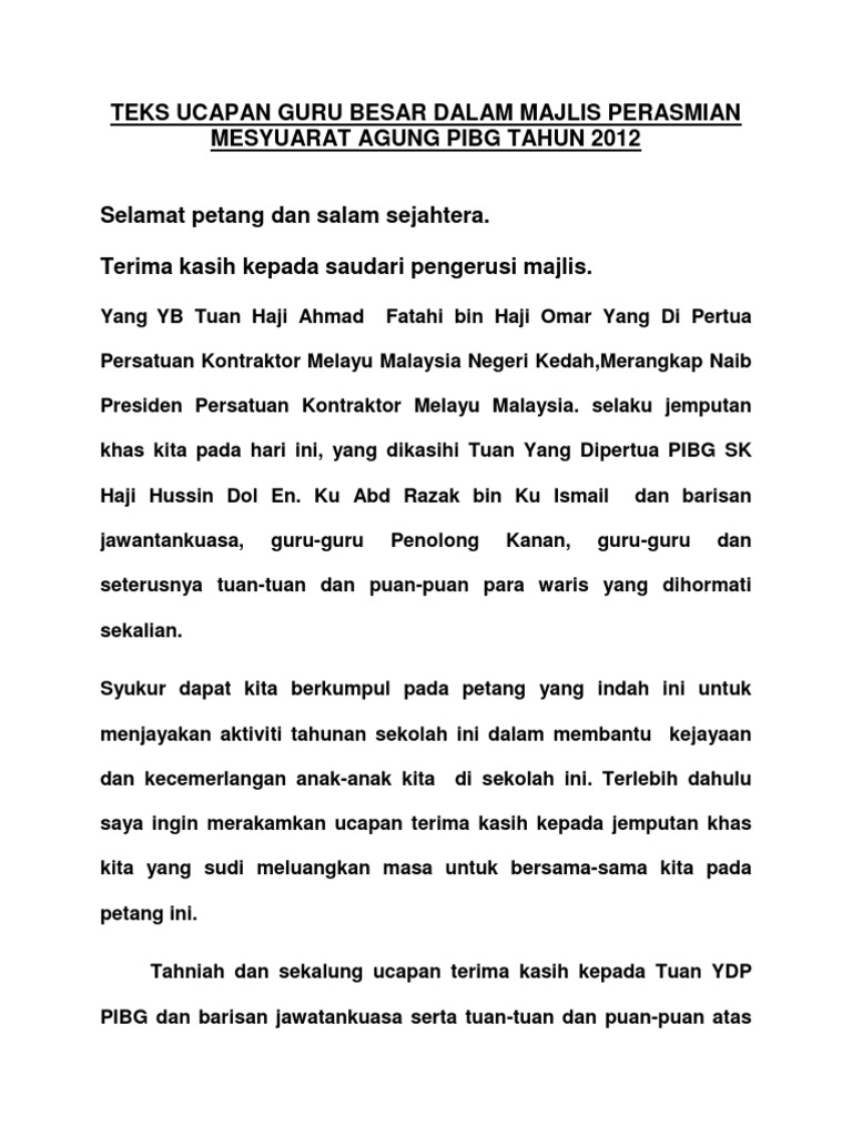 Teks ucapan perasmian mesyuarat agung pibg.